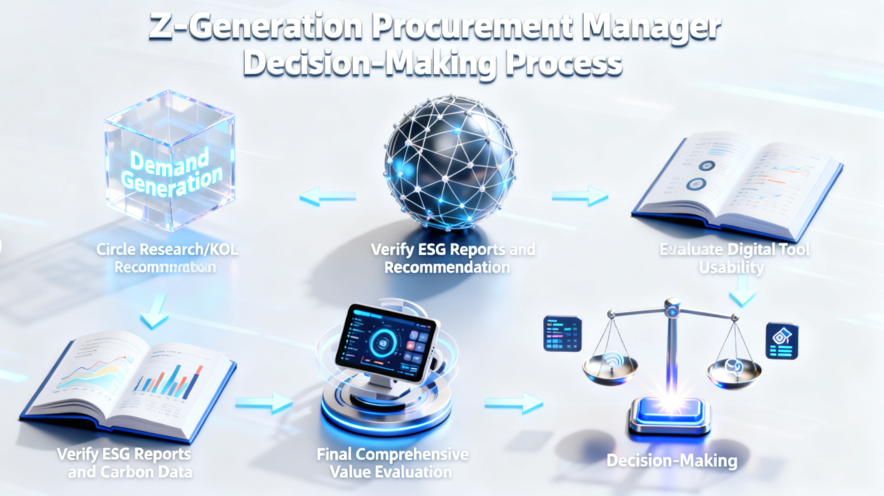 (Caption: Gen Z decision process: A multi-step, value-driven approach replaces traditional linear procurement.)
