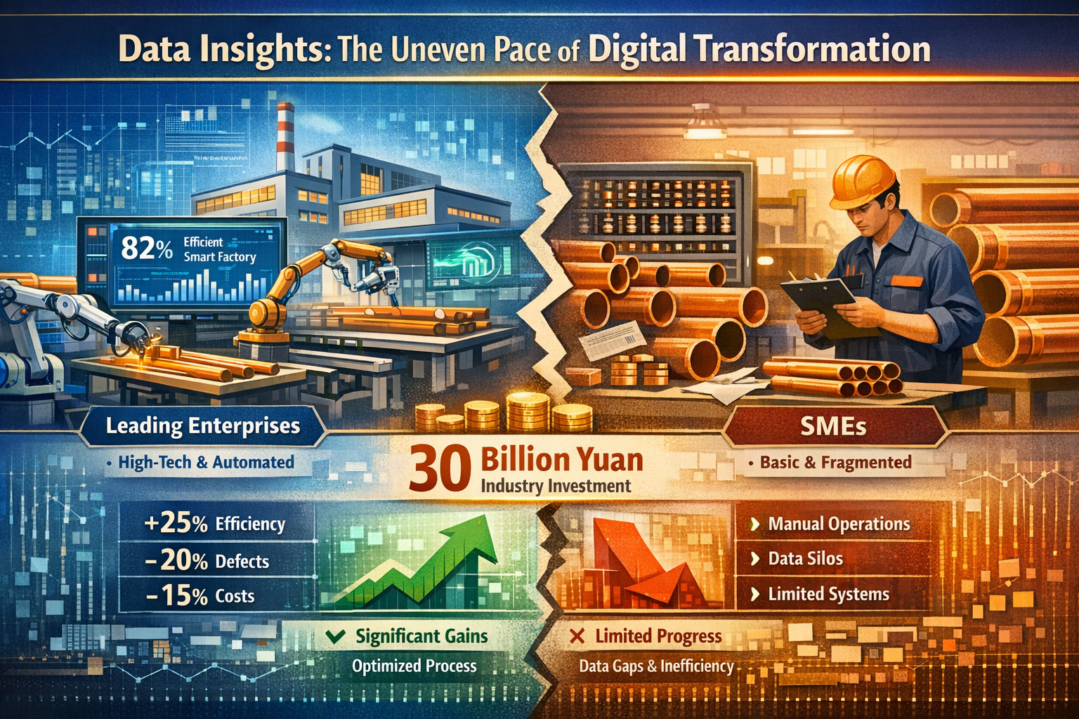 “We spent over 8 million yuan on an ERP system and a production monitoring platform, but in the end, we only moved our paper-based ledgers online. Production efficiency didn't improve much, and it even increased the workload for our employees.” Mr. Wang, the head of a medium-sized copper tube company in Henan Province, expressed the common dilemma faced by the industry in its digital transformation. Driven by the "Made in China 2025" initiative and the Industry 4.0 wave, the copper tube industry has seen a surge in digital transformation efforts, with companies ranging from leading enterprises to small and medium-sized manufacturers investing heavily in intelligent equipment and digital systems. However, the reality is that most companies are trapped in a cycle of "heavy investment, little return," with digitalization remaining superficial; only a few companies have achieved deep empowerment, leveraging digitalization to connect the entire chain of production, supply chain, and customer service, resulting in cost reduction and efficiency improvement. On one hand, there is the formalism of "digitalization for the sake of digitalization," and on the other hand, there is the effective transformation of "driving value creation through digitalization." Why is there such a polarization in the digital transformation of the copper tube industry? Behind this lies a complex interplay of cognitive biases, technological adaptation, talent support, and strategic planning, which also concerns the core driving force for the high-quality development of the industry.