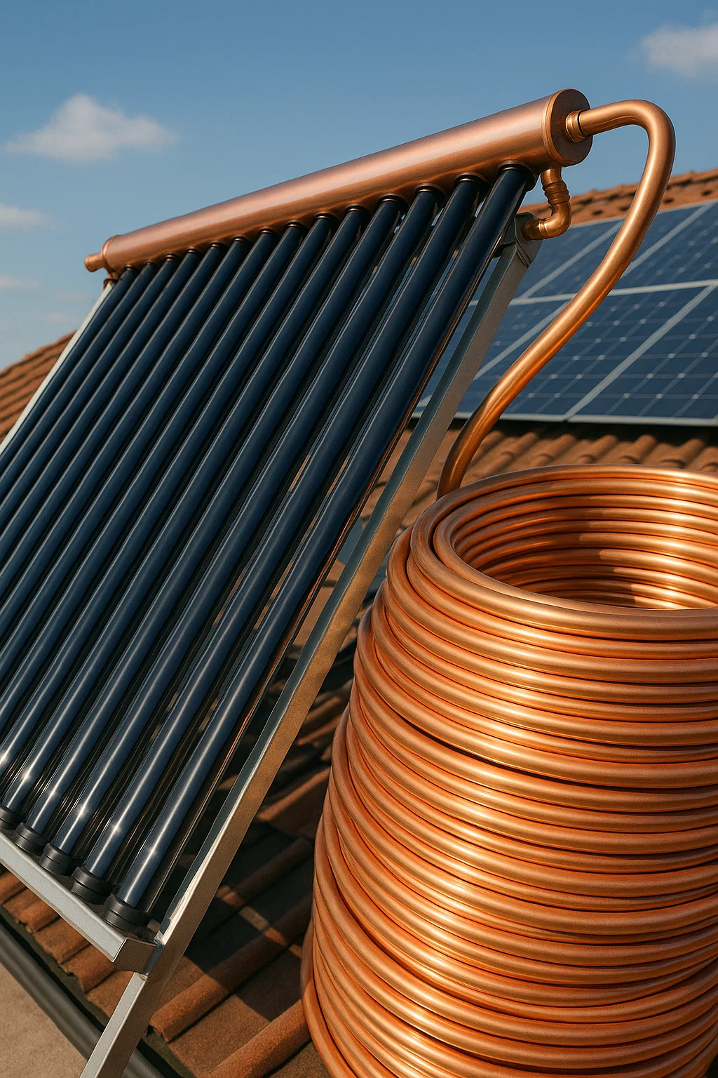 Copper tubes are used in solar water heaters for efficient heat transfer. |